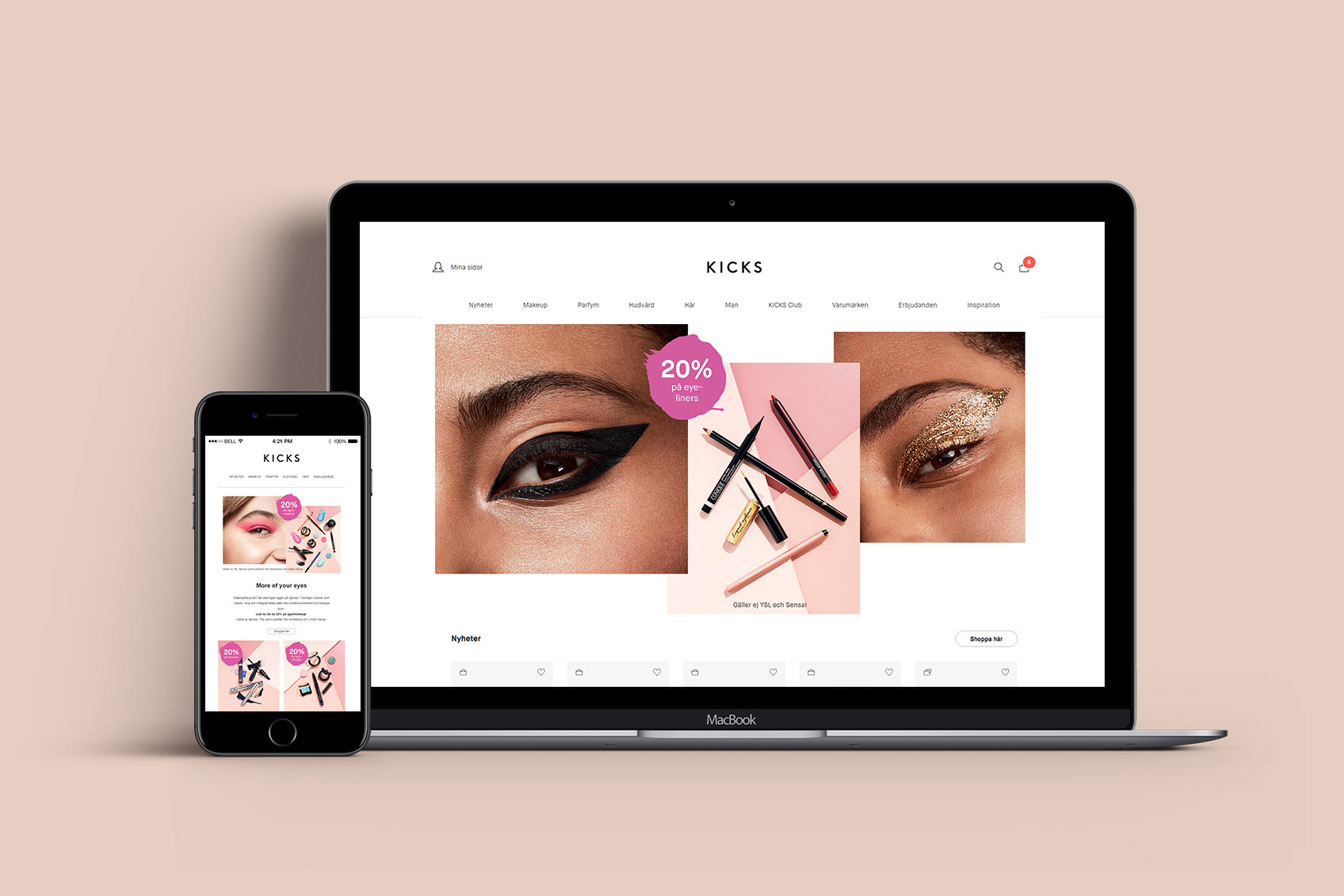 Final art for Kicks' nordic campaign "More of your eyes". I created assets for the campaign across multiple platforms. The campaign was displayed on Kicks’ website, in newsletters, store signs and digital ads.